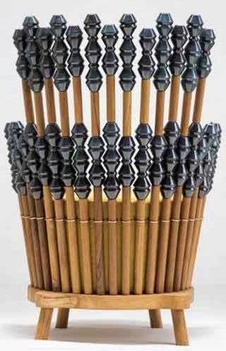 wooden moulds—the pieces joined by an ancient coal welding technique. While the forms are contemporary